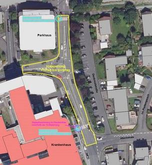 Als nächstes folgt der Bereich Denkmalstraße/ Krankenhausstraße mit dem Mini-Kreisel am Parkhaus. Hier ist eine vollflächige Sanierung des Asphaltbelages geplant.