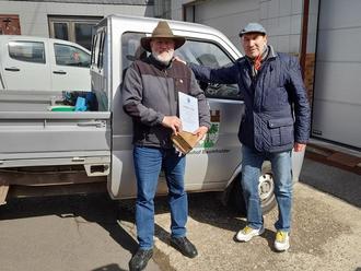 An seinem letzten Tag wurde Claus Wahl von Stadtbürgermeister Günther Jung im kleinen Kreis des Bauhofes verabschiedet. Stadtbürgermeister Günther Jung würdigte das Engagement von Claus Wahl und fasste die letzten 39 Jahre noch einmal kurz zusammen. Jung und Bauhofleiter Andreas Welsch bedankten sich bei Claus Wahl und überreichten ihm eine Urkunde, einen Essensgutschein sowie ein Weinpräsent. Im Ruhestand will sich Wahl vor allem seinen Hobbies widmen.