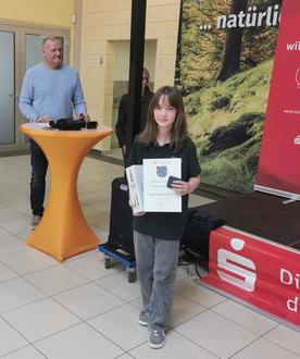 Hier wurde Elisa als Jugendsportlerin 2025 mit der Urkunde und einer Silbermedaille des Landkreis Birkenfeld und einem Präsent der Kreissparkassen für ihren Erfolg als "RLP-Meisterin im Lichtpunktschießen" ausgezeichnet.