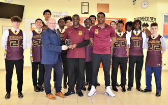 "Mit dem Gewinn der fünften Meisterschaft in Folge haben Sie unsere Region und die US-Militärgmeinde hervorragend repräsentiert. Ihre Leistung macht auch uns stolz", sagte Bernd Alsfasser, Bürgermeister der Verbandsgemeinde Baumholder, als er die Basketballmannschaft an der US-High School in Baumholder besuchte. Die "Buccaneers", wie sie genannt werden, haben in diesem Jahr zum fünften Mal die Basketball-Europameisterschaft der Division III gewonnen. Alsfasser befand, dass diese Leistung eine entsprechende Würdigung verdient. Die Spieler, gemeinsam mit ihrem Cheftrainer Dewayne Pigge und Assistenztrainer Julius Cobb sowie der Schulleiterin Leah Zamor, empfingen den Bürgermeister in der Schulaula. Stolz präsentierte die Mannschaft dem Gast ihre Siegerplaketten.