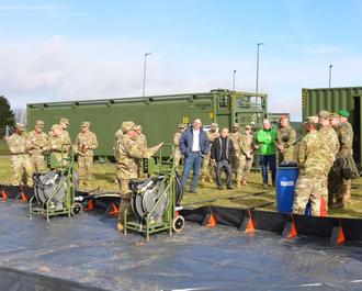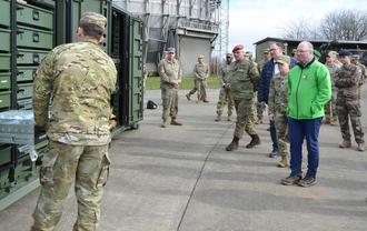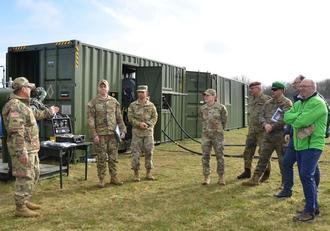„Eine beachtenswerte Leistungsfähigkeit, was die Einheit hier vorgeführt hat", resümiert Bernd Alsfasser. Gemeinsam mit dem Ersten Beigeordneten der Stadt Baumholder, Christian Flohr, dem Ortsbürgermeister von Rückweiler, Lutz Altekrüger und dem Deputy Garrison Manager Jae Kim, besuchte der VG-Bürgermeister die Feldübung des 95th Combat Sustainment Support Battalions (95. Unterstützungsbataillon für Kampfeinsätze) in der US-Militärgemeinde Baumholder. Lieutenant Colonel Robin Eskelson, Kommandeurin des 95th CSSB, informierte zu Beginn der Feldübung die Gäste - unter ihnen waren hochrangige Besucher von verbündeten Partnerstreitkräften - über ihre Einheit und den Auftrag. 2023 ist das Bataillon in Baumholder aktiviert worden. „Bei unserer ersten Feldübung hier in Baumholder 'Operation Pony Express' richten wir ein Konvoi-Unterstützungszentrum ein, welches simulierte Convoy Support Center Operationen ermöglicht", erklärte Eskelson. Das CSC, wie es kurz genannt wird, ist im Grunde eine militärische Raststätte, in der die taktischen Fahrzeuge aufgetankt und gewartet werden und Soldaten essen und schlafen können, bevor sie ihren Auftrag weiter ausführen. „Diese Űbung, gemeinsam mit verbündeten europäischen Partnerstreitkräften, stärkt unsere Einsatzbereitschaft und verbessert die gemeinsamen Führungs- und Kontrollverfahren", so die Kommandeurin.