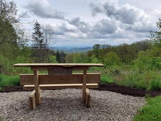 Die Mitarbeiter vom Bauhof haben die Bank am Grünewaldsblick erneuert. Verwendet wurde hierfür das Holz einer vom Sturm entwurzelten Eiche aus dem Stadtwald.