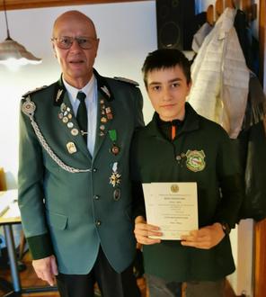 Im Rahmen der MGV wurde der Jungschütze, Julius Alles ausgezeichnet. Bei den Ligakämpfen schoss Julius in der Mannschaft LG IV mit und glänzten dort mit sehr guten Ergebnissen. Für diese erhielt er die Leistungsnadeln in klein Bronze, und für 310 Ringe in Silber.