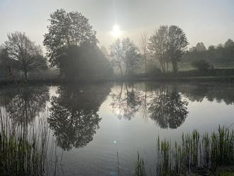 Eine idyllische Stimmung herrschte an einem frühen Maimorgen am Grasbachweiher in Berschweiler: die Umgebung von der kühlen Nacht noch leicht in Nebel getaucht, spiegeln sich die Bäume auf der Wasserfläche, im Gegenlicht der aufgehenden Sonne!