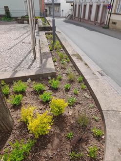 Aufgrund des tristen Anblickes der Blumenbeete am Place de Warcq und getreu dem Motto „Unsere Stadt soll grüner und bunter werden!“ hat der Bauhof der Stadt Baumholder die vorhandenen Beete mit Pflanzen ergänzt bzw. im Bereich der Treppe mit neuen Pflanzen begrünt.