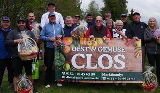 Zu Beginn der Golfsaison 2024 auf unserer Anlage in Baumholder fiel am 28. April der Startschuss für das erste große Turnier. Gesponsert vom Mitglied Dirk Clos gingen 28 Spieler/innen des GC Rolling Hills auf die 18 Loch Runde des 1.Obst und Gemüse Clos Farmers Green Turnier. Das Team um D.Clos (vertreten auf den Märkten in Offenbach-Hundheim, Wolfstein, Lauterecken) sorgte auch für die Halfwayverpflegung mit Burgern und Obst, sodass alle gut gestärkt auf den 2. Teil der Runde gehen konnten. Beim abschließenden Essen wurden die Ergebnisse bekanntgegeben, und die entsprechenden Personen mit Präsenten, gesponsert vom Team Clos, geehrt. In der Bruttowertung der Damen siegte Lisa Marie Böttcher (Mühlbach) vor Doris Dickes (Baumholder) und Jutta Brust (St. Wendel).Die der Herren gewann Marc Ohliger (Oberkirchen) vor Kai Drumm (Niederalben) und Matthias Mees (Lebach). Sieger der Nettoklasse A ist Marc Ohliger, gefolgt von Mirko Müller (Hoppstädten) u. Dirk Clos (Hüffler), die Klasse B gewann Klaus Heidrich (Kusel) vor Albin Müller (Freisen) u. Dieter Bergisch (Baumholder). Klasse C: Reiner Schütz (Freisen) vor Maximilian Baas (Haschbach) u. Lisa Marie Böttcher.