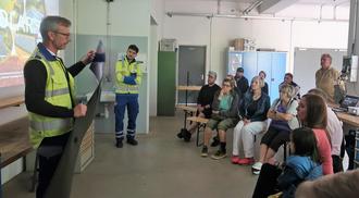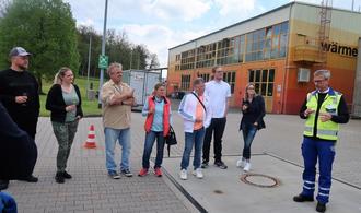 Und dann ging es auch schon rein in das Biomasseheizwerk, das 2019 seinen Betrieb aufnahm. In zwei Gruppen aufgeteilt, erfuhren die Stammtischler jede Menge Fakten. Neben Johann war es Sebastian Müller, Leiter der Anlage, der den Gäste gerne Rede und Antwort stand. Nach einer kurzen Vorstellung der OIE und insbesondere dem zentralen Geschäftsfeld der Erneuerbaren Energien betonte Johann, dass es erklärtes Ziel des Unternehmens sei, bis 2035 „weg zu sein von fossiler Energie“. Neben den Biomasseanlagen sei besonders die Solarenergie für die OIE von zentraler Bedeutung. Sechs Freiflächen-Solaranlegen Anlagen mit mehrere Millionen Invest betriebe man bereits, weitere sollen folgen.