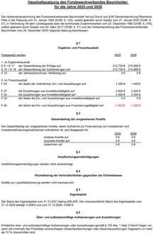 Haushaltssatzung und Haushaltsplan des Forstzweckverbandes Baumholder für die Haushaltsjahr 2025/2026