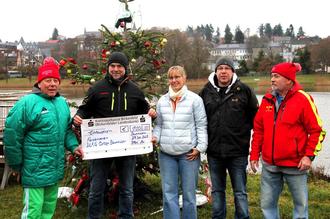 Bild: Von links: Bernd Mai, Kai Ludmann, Melanie Mai, Tobias Kneller und Günter Heinz bei der Scheckübergabe