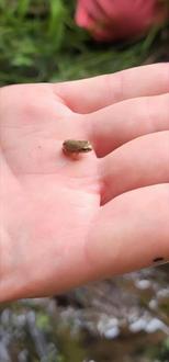 Der Naturschutzverband Baumholder berichtete schon mehrmals über das Thema „Rana temporaria“ (Grasfrosch) im Stadtwald von Baumholder. Ludwig und Lola sind also die, von den Waldkindern gebastelten Dosenfrösche, die auf zwei Pfosten des Rangerzauns am Tümpel ihren Platz gefunden haben. Nur durch eine stetige Wasserzufuhr von Anfang an und nicht nur an den heißen Tagen, erfolgte mit einem Wasserfass, das mit circa 700 Litern frischem Quellwasser gefüllt wurde, konnten doch sehr viele der Kaulquappen überleben und sich durch die Metamorphose zu Grasfröschen entwickeln. Die ersten Fotos der Kleinen (Frösche) wurden durch unsere Waldkinder, die fast täglich den Tümpel besuchen, vor kurzem aufgenommen. Ehrlich gesagt, wenn man die Größe der Frösche betrachtet, könnte man sie auch mal übersehen. Es sind aber immer noch einige Kaulquappen im Tümpel unterwegs, die auch weiterhin so lange mit Wasser versorgt werden, bis sie es, wie die anderen auch, soweit geschafft haben.