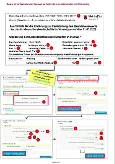 Die Steuerverwaltung sendet im Regelfall allen Eigentümerinnen und Eigentümern von Betrieben der Land- und Forstwirtschaft sowie von verpachteten Flächen (ehemals bezeichnet als Stückländereien) im August 2022 ein Informationsschreiben zu. Dieser Service dient als Hilfestellung zur Abgabe der Erklärung zur Feststellung des Grundsteuerwerts. Diesem Schreiben ist ein Datenstammblatt mit den der Steuerverwaltung vorliegenden Liegenschafts-/Geobasisdaten zum jeweiligen Grundbesitz sowie eine Erläuterung zum Ausfüllen der Erklärungen beigefügt.