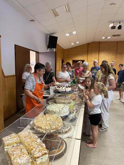 Das üppige Kuchenbuffet fand reißenden Absatz, kühle Getränke und Leckereien vom Grill rundeten den gelungenen Tag mit viel guter Laune ab. Als Alleinunterhalter „Schnugga“ (Jürgen Schug) am Nachmittag in die Saiten griff, wurde mitgesungen, getanzt und gefeiert. So klang am späten Abend das erfolgreich verlaufene Dorffest aus.