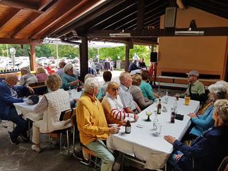 „Das Gesellige und auch das Kulinarische“, so Totz, „soll bei unserem heutigen Sommerfest nicht zu kurz kommen. Nach dem Essen bieten wir eine kleine Verdauungswanderung, geführt von Peter Nauert, an. Anschließend können sich die Gäste an dem kostenlosen Kuchenbuffet, präsentiert von Ilka Klein und Irmgard Bender, gerne bedienen lassen“. Für die musikalische Unterhaltung sorgte Richard Müller mit seiner Hammondorgel. Ein weiterer Höhepunkt des Tages war der spontan aufgeführte Sketch, für den K-H. Totz viele Anwesende gewinnen konnte und der zur Erheiterung Aller beitrug.