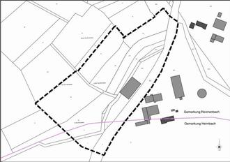 Der ca. 0,35 ha große Teilbereich der Gemarkung Heimbach beinhaltet das Grundstück mit den Fl.-Nr. 4 und teilweise die Grundstücke mit den Fl.-Nrn. 1, 2, 3 und 5. Lage und Grenzen können dem nachstehenden Lageplan entnommen werden.