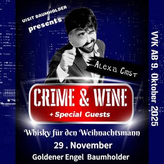 Für alle, die schon jetzt in vorweihnachtliche Stimmung kommen möchten oder sich gerne von Spannung und Kulinarik entführen lassen: Crime & Wine – Whisky für den Weihnachtsmann verspricht ein Abend voller Geschichten, Geschmackserlebnisse und Überraschungen. Einlass ab 18:00 Uhr, Beginn um 19:00 Uhr – seien Sie dabei!