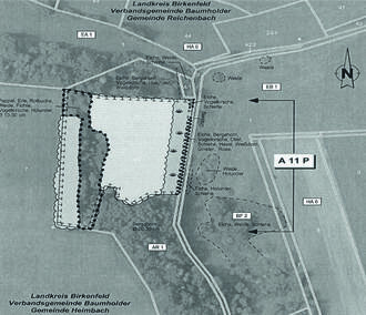 Für die Kompensation des Eingriffs im Plangebiet wird eine externe, ca. 1,4 ha große Kahlschlagfläche auf dem nördlichen Teil der Parzelle 4/2 (Gemarkung Heimbach, Flur 6) herangezogen.