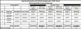 Die meisten Wertungspunkte erhielt das Ing. Büro Petry aus Idar-Oberstein. Die Auftrags-summen teilen sich wie folgt auf.