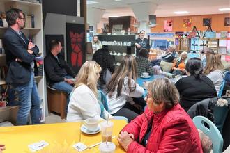 Einen etwas anderen Treffpunkt suchte sich dieser Tage der deutsch-amerikanische Stammtisch aus. Statt, wie üblich, im Hotel "Zum Stern", trafen sich die Teilnehmer bei "Mother Earth" in der Bahnhofstraße. Deren Inhaberin Julie Porter hatte den Stammtisch zu sich geladen. Julie Porter kommt selbst regelmäßig mittwochs zum Stammtisch und hat nun ihren Laden um eine Lounge erweitert. Was lag also näher, als sich dort einmal zu treffen? Die Beteiligung an diesem Abend war groß, genau wie die Neugier auf diese neue Möglichkeit der Einkehr in Baumholder. "Hier kann man auch einfach mal vorbeikommen und einen Kaffee trinken, auch schon ab 6 Uhr morgens", erklärte Julie Porter. Interesse fanden auch die zahlreichen Geschenkideen, die die Amerikanerin anbietet. Seifen in allen Farben und Variationen, Wasserbomben und viele andere Dinge, die riechen, schön aussehen und gut tun. Sehen kann man auch ausgestellte Bilder von Roland Palm. "Es war sehr gemütlich hier und noch dazu informativ", sagte Bernd Mai, der den Stammtisch leitet. Möglich, dass das Treffen hin und wieder zu "Mother Earth" verlagert wird.