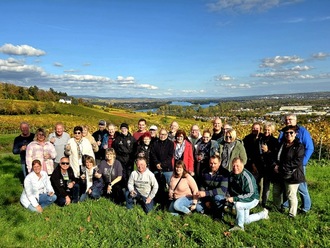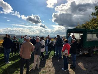 Baumholder. Eine Planwagenfahrt durch die Weinberge, das klingt lustig und idyllisch. Aber nur, wenn das Wetter stimmt. Und so hatten die 31 Tour-Teilnehmer der Alten Herren vom VfR Baumholder großes Glück, dass am Samstag die Sonne schien und der Regen keine Chance hatte. Schon früh am Morgen ging es mit dem Zug von Baumholder aus nach Bingen; organisiert hatten die Tour Rainer Albert und Herbert Heidrich. Nach einem Frühstück in der Innenstadt und einer Bootstour auf dem Rhein, vorbei an den zahlreichen romantischen Dörfern und historischen Burgen, waren die VfRler zu Gast in einem Weingut. Verteilt auf drei Planwagen, die allesamt mit Wein und entsprechenden Vorrichtungen für die Gläser bestückt waren, ging es hoch hinauf in die Weinberge. Winzer Jörg Krick gab Informationen zu seinem Familienbetrieb, zu den einzelnen Rebsorten und erklärte die insgesamt sechs Weine, die bei drei Stopps ausgeschenkt wurden. Die AH-Truppe genoss die Weine, die Brezeln mit Frischkäse und die gute Stimmung - da wurde so mancher Udo-Jürgens-Hit angestimmt und auf den 1. FC Kaiserslautern angestoßen, der an diesem Nachmittag im Derby gegen Karlsruhe siegte. Nach gut zwei Stunden ging es zurück nach Bingen, von wo aus nach einem frühen Abendessen
