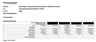 Die Stadt Baumholder plant derzeit die Neuanlage einer Löschwasserentnahmestelle im Wald zur Bewältigung der durch Extremwetter verursachten Schäden im Wald. Der Löschwassertank muss ein Volumen von 50m3 haben. Das überschüssige Material des Aushubes muss vor Ort verteilt und eingeebnet werden. Die Bauleistungen wurden beschränkt ausgeschrieben Es wurden insgesamt 6 Firmen aufgefordert ein entsprechendes Angebot vorzulegen, 5 Firmen haben ein Angebot abgegeben.
