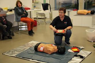 An einem Sonntagnachmittag traf man sich zu einem fast vierstündigen Kurs zur Auffrischung der Grundkenntnisse in Erster-Hilfe. Es wurden die Maßnahmen bei medizinischen Notfällen besprochen und eine Reanimierung unter Einsatz des Defibrillators geübt. Die anfängliche Hemmschwelle gegenüber diesem Gerät konnte bei den Kursteilnehmern überwunden werden. Auch das Verhalten bei medizinischen Notfällen wie Herzinfarkt oder Schlaganfall erklärte Gaby Zahler. Die Museumsengel sind sehr dankbar, dass sie nun auf eventuelle Notfälle während der Öffnungszeiten des Museums oder bei Veranstaltungen im Kulturzentrum besser vorbereitet sind.