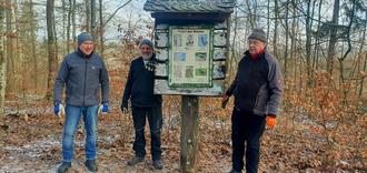 Schon in den ersten paar Tagen des neuen Jahres mussten sich fleißige Helfer des Naturschutzverbandes um eine weitere Schautafel im Stadtwald kümmern. Bei der alljährlichen Prüfung der Schautafeln auf ihre Standsicherheit wurde bei der Nummer 21 festgestellt dass der Pfosten komplett im Erdreich abgefault war und umgehend repariert werden muss. Die Waldkinder des Ev. Kindergartens die in der Nöhringhütte ihren Stützpunkt eingerichtet haben wollen ja schließlich ihre täglichen Erkundigungstouren sicher im Stadwald unternehmen. Also wurde zeitnah ein neues Fundament ausgehoben und mit einem 1 Meter langem Stahlprofil welches der Naturschutzverband immer vorhält einbetoniert. Anschließend befestigten wir den Pfosten mit zwei entsprechenden Gewindestangen an diesem Stahlträger. Jetzt muss, wenn das Wetter besser ist, nur noch das Dach neu eingedeckt werden. Diese Vorgehensweise haben wir in den letzten paar Jahren schon an einigen der 30 Schautafeln im Stadtwald, erfolgreich eingesetzt.