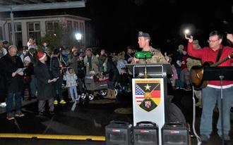 Es ist wie in jedem Jahr, und doch wieder anders: das offizielle Beleuchten des Weihnachtsbaumes in der US-Militärgemeinde Baumholder - feierlich, Reden, und ein lautes Raunen als die Lichter angehen. Aber es gibt auch etwas Neues: Erstmals seit 2015 ist es nicht der Baum vor dem US-Hauptquartier, der zum Leuchten gebracht wird, sondern der Tannenbaum am Rheinlander-Club. Dieser war eigens für diese "Tree Lighting-Ceremony-Tradition” 2001 gepflanzt worden. Allerdings wurde dann der Club renoviert und damit die Zeremonie an das zentrale Hauptquartier verlegt.
