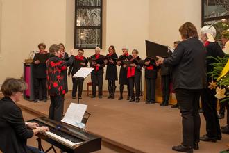 Nach einem Orgelstück, gespielt von Christine Kreischer, sang der Frauenchor unter Leitung von Cornelia Möckel drei stimmungsvolle adventliche und weihnachtliche Lieder. Großartig harmonierten anschließend Silke Schnepp-Mohr und Cornelia Möckel bei fünf Flötenduetten, die den Inhalt der Weihnachtsgeschichte musikalisch nachzeichneten.