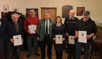 Für 40-jährige Mitgliedschaft im Deutschen Schützenbund sowie Pfälzischen Sportschützenbund wurden Petra Herrmany, Susanne Horn, Claus Brocker, Armin Henn, Rüdiger Heß, Frank Osenbrück und Fritz Theis ausgezeichnet.