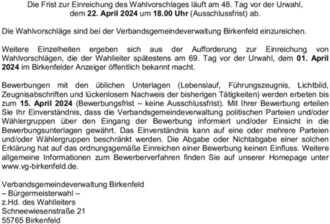 Stellenausschreibung der Verbandsgemeinde Birkenfeld