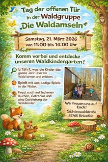 | - | Die Kita-Kinder aus dem Amselnest und die Waldamseln überraschen mit einer Darbietung zur Eröffnung um 11:00 Uhr |