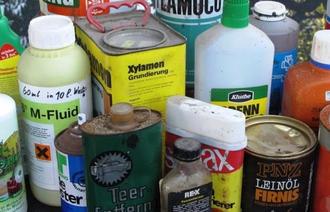 - Farben, Lacke, Lösungsmittel: Flüssige Wandfarbe, Spraydosen, Terpentin usw.