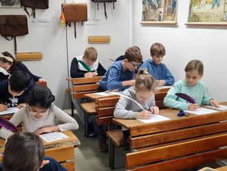 Dort konnten die Drittklässler im „alten Klassenzimmer“ hautnah erleben, wie der Schulalltag vor 100 Jahren aussah. Die Kinder durften eine Unterrichtsstunde wie damals nachspielen und mit Griffeln auf Schiefertafeln schreiben - eine spannende Erfahrung!