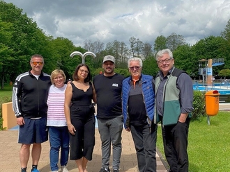 von links: Meister für Bäderbetriebe Christian Nowack, Brigitte Kreis, Kathrin Kreis, Thomas Kreis, 1. Beigeordneter der Verbandsgemeinde Birkenfeld Klaus Feis, VG-Werkleiter Jürgen Jahn