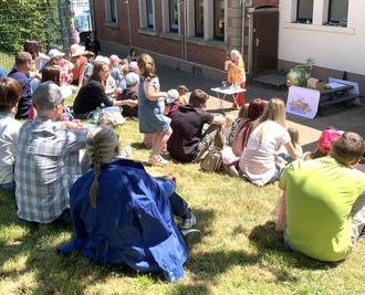 Fröhliche Gesichter im liebevoll geschmückten Hof der Kita Schwollen – bei strahlendem Sonnenschein wurde gemeinsam gefeiert, gelacht und erinnert.