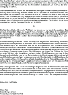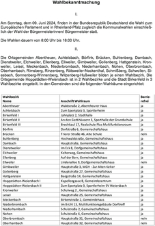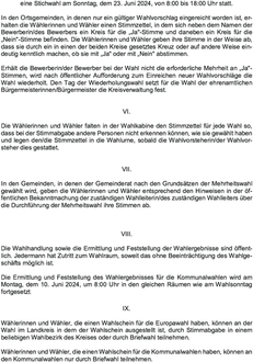 Wahlbekanntmachung zur Europa- und Kommunalwahl am 09.06.2024 und evtl. stattfindende Stichwahlen am 23.06.2024