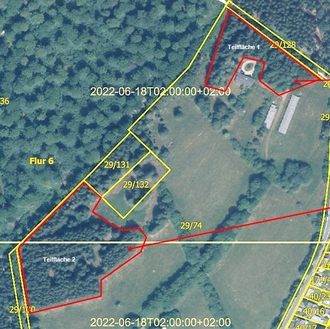 Die Luftbildauswertung aus LANIS ergibt, dass es sich bei den bereits gerodeten Teilflächen 1 und 2 (rote Umrandung) um Waldflächen im Sinne des Landeswaldgesetzes handelte. Auch im LANIS sowie durch die Privatwaldkartierung sind beide Flächen als Wald erfasst: