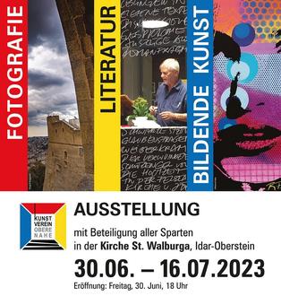 In der Zeit vom 30. Juni bis 16. Juli präsentieren 26 Bildende Künstler und Fotografen rund 100 Werke in der Kirche St. Walburga in Oberstein, Wasenstraße 20. Begleitet wird die Ausstellung von sechs Lesungen der Autorengruppe.