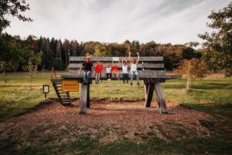 Weitere Punkte gab es auch zur markierten Kinderwagenvariante beim Anstieg zum Plateau, die den Weg auch für Familien mit kleinen Kindern bequem und barrierefrei gestaltet. Die Einbindung der „Willys Wilder Wiesenwelt“ bereichert das Wandererlebnis zusätzlich und lädt zum Entdecken und Staunen ein. Die Aussicht vom Waldrand, wo eine wohlplatzierte Sinnesbank zum Verweilen einlädt, ist schlichtweg grandios. Dort befindet sich auch ein Rastplatz mit Sonnensegel-Beschattung, der perfekt für eine Pause im Grünen geeignet ist. Für eine tolle Aussicht sorgt die XXL-Riesenbank, die sowohl junge als auch erwachsene Wanderer zum Verweilen einlädt.