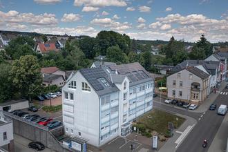 Im November 2020 wurde auf dem Dach der Verbandsgemeinde-Verwaltung eine PV-Anlage von 23,45 kWp installiert. „Wir haben damals die Chance ergriffen, dass für die Fenstererneuerung sowieso ein Gerüst am Rathaus stand, um Kosten zu sparen,“ erinnert sich Verbandsgemeinde-Bürgermeister Dr. Bernhard Alscher. Auch die Anlage selbst hat die VG Birkenfeld nichts gekostet: In Zusammenarbeit mit der Anstalt öffentlichen Rechts (AöR) „Erneuerbare Energien für Birkenfeld“ wurde ein Pachtmodell entwickelt, bei dem die PV-Anlage und der ergänzende 10,24 kWh große Stromspeicher von der AöR gekauft wurden, die auch die Installation der Anlage finanziert hat.