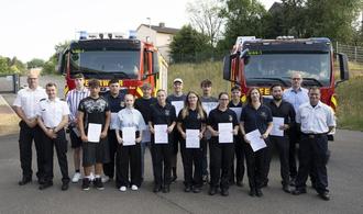 Anschließend wurden insgesamt 13 neue Feuerwehrangehörige aus verschiedenen Ortswehren feierlich zum aktiven Dienst verpflichtet. Diese jungen Kameradinnen und Kameraden stärken nicht nur die Einsatzbereitschaft der Feuerwehren, sondern setzen auch ein deutliches Zeichen für das fortdauernde Engagement der Bevölkerung für den ehrenamtlichen Dienst am Nächsten. Verpflichtet wurden: