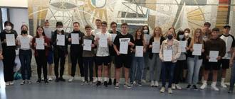 Besonders hervorstechend war hierbei die gemeinsame Arbeit von Jara Stoffel (10a) und Kira Bohrer (10c). Da ihre Ausarbeitung zu den besten in Rheinland- Pfalz gehört hat und sie auch bereits im letzten Jahr für ihre Arbeit eine Ehrenurkunde mit Buchgutschein erhalten haben, werden sie nun mit dem Abschlusspreis belohnt: Ein Workshop mit praktischen Arbeiten im Chemielabor, der von der BASF SE in Ludwigshafen ausgerichtet wird. Kira Bohrer wird die Gruppe dort vom 12.-14.09.2022 alleine vertreten, da nur ein Teilnehmer pro Gruppe erlaubt ist.