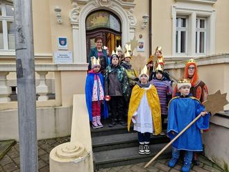 Birkenfeld, 06.01.2024 - Die traditionellen Sternsinger, auch bekannt als Heilige Drei Könige, wurden im Stadthaus Birkenfeld herzlich von der 1. Beigeordneten Christine Tholey-Martens empfangen. Mit ihrem Besuch brachten sie den Segen ins Stadthaus und sorgten für eine festliche Atmosphäre.