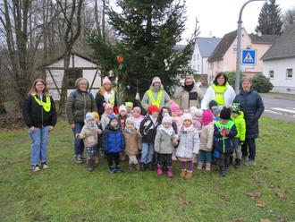 Mit viel Eifer bastelten die Kinder weihnachtliche Dekorationen für den großen Tannenbaum auf dem Dorfplatz. Nachdem die Dekorationen aufgehängt wurden, bestaunten die Kinder stolz ihr Werk und freuten sich über den festlichen Anblick.