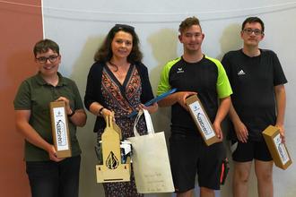 Die Repräsentanten des Gewinnerteams "Realschule plus und Fachoberschule Birkenfeld" mit Ihren Preisen von NEATFLOW"