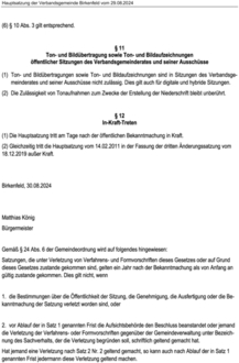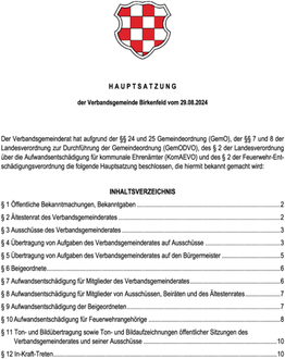 Bekanntmachung der Hauptsatzung der Verbandsgemeinde Birkenfeld