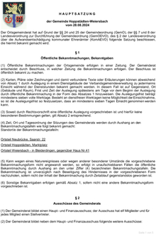 Bekanntmachung der Hauptsatzung der Ortsgemeinde Hoppstädten-Weiersbach