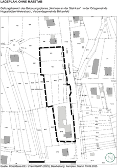 Der Gemeinderat der Ortsgemeinde Hoppstädten-Weiersbach hat am 08.10.2025 die Aufstellung des Bebauungsplanes und die mit ihm aufgestellten örtlichen Bauvorschriften „Wohnen an der Steinkaul“ im beschleunigten Verfahren beschlossen, um die bauliche und sonstige Nutzung nach Maßgabe des Baugesetzbuches (BauGB) und der Baunutzungsverordnung (BauNVO) zu ordnen und zu leiten.