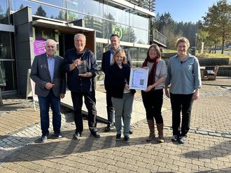 Bei der Vorstellung am Nationalpark-Tor Erbeskopf und am Traunbach war auch die ehemalige Umweltministerin Ulrike Höfken zugegen. Ihr zu Ehren benannten die Forschenden der Uni Koblenz die neu entdeckte Rotalge Hoefkenia hunsrueckensis. Prof. Dr. Eberhard Fischer und Dr. Dorothee Killmann überreichten Ulrike Höfken eine Urkunde und dankten ihr damit für ihr besonderes Engagement und ihren Einsatz für den Nationalpark.