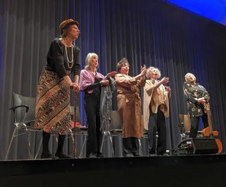 Das Homburger Frauenkabarett, bestehend aus Silke Müller, Gisela Walter, Heidi Hennen, Birgit Schöndorf und Ursula Meyer-Anslinger, spielten das Programm "Treffer in der Nachspielzeit" als Best-of aus früheren Produktionen des seit 23 Jahren bestehenden Ensembles.
